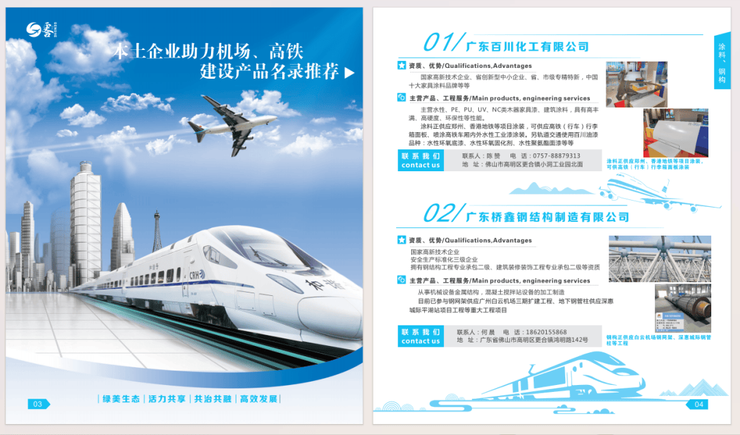 本名录聚焦机场、高铁建设所需产品,对各类高度适配产品进行细致分类,全面展示了涂料、钢构、建材、陶瓷卫浴等多种行业的主营产品特性、工程服务范围,资质优势亮点等关键信息,着重凸显企业产品在过往机场、高铁项目中的成功应用案例和卓越成果。
